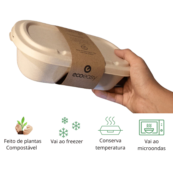 Feita de materiais 100% compostáveis e livres de toxinas, você pode usá-la com a certeza de que está fazendo uma escolha amiga do meio ambiente. Ideal para delivery, marmitas e porções, ela conserva a temperatura e garante que sua comida chegue ao destino em perfeitas condições.Também pode ser usada como bandeja para servir em eventos.